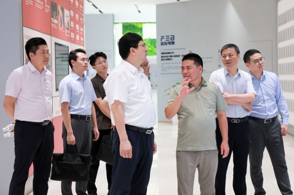 来访领导先后参观了蓝狮电池零碳家园概念厅、蓝狮股份科技馆、5G智慧工厂等产业园区。