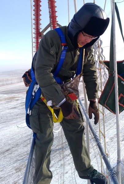 零下19摄氏度!新疆历年12月的平均气温!每天驱车近2小时到达工程现场,背着几十斤重的设备,登近100米高塔,每日高空走线超1.5千米。